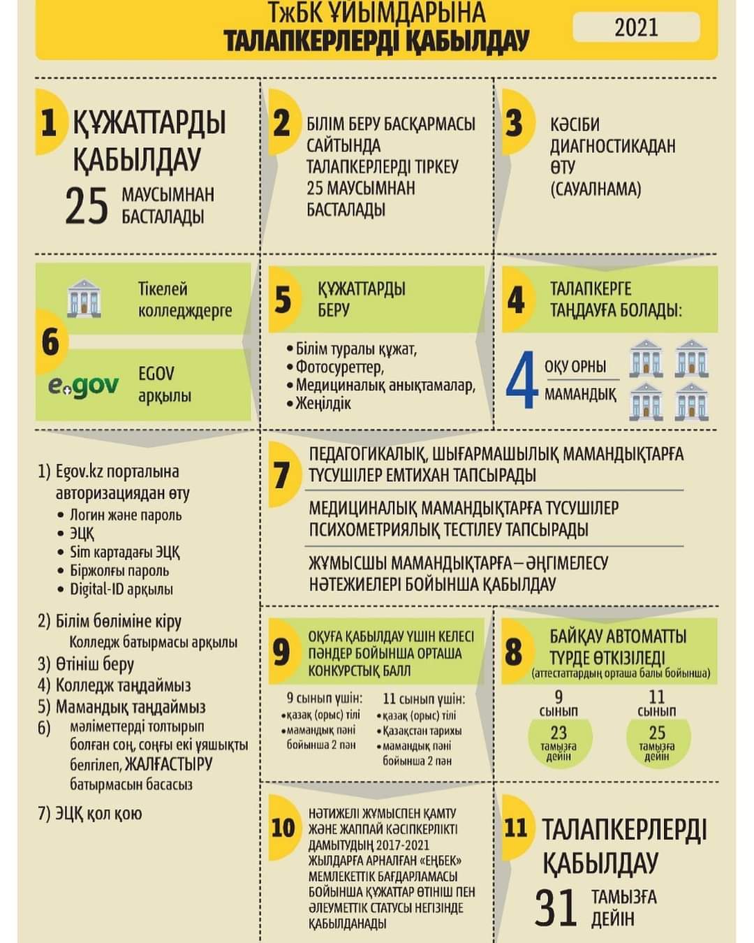 Мамандықтар бойынша талапкерлерді қабылдау