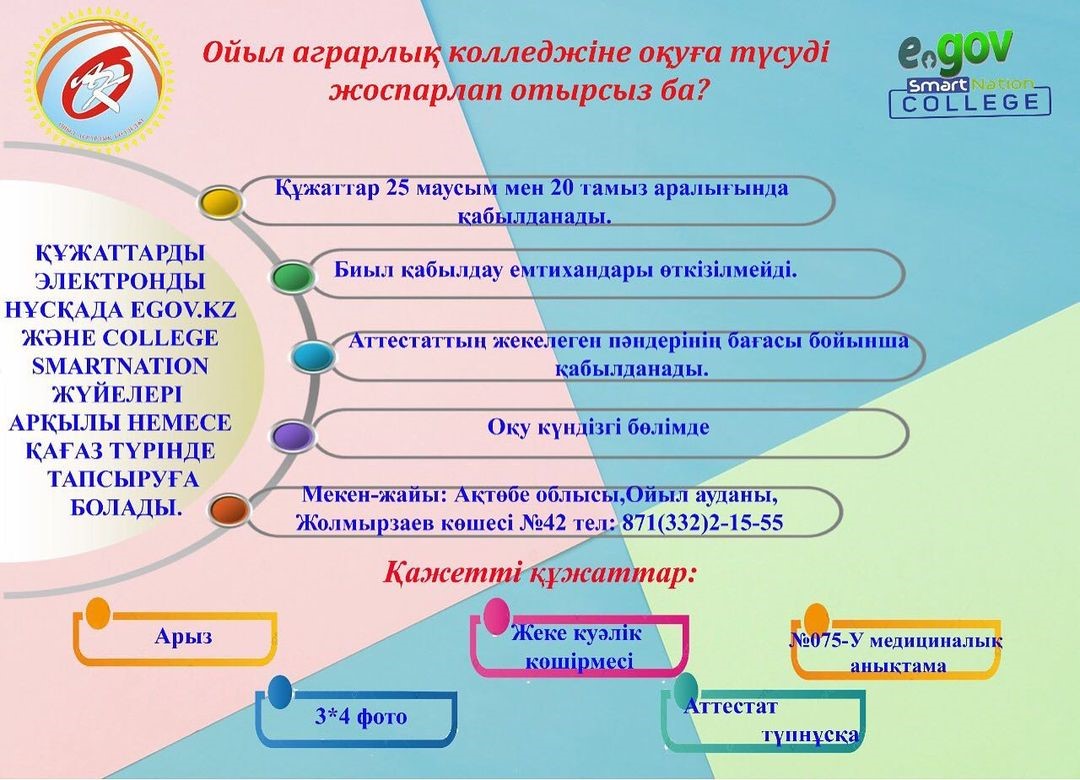 Сіздерді Ойыл аграрлық колледжіне ақысыз білім алуға шақырамыз.