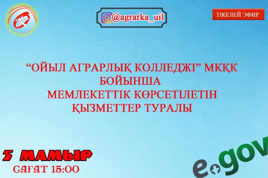 Мамыр айының 5-сі күні колледжде көрсетілетін мемлекеттік қызметтер бойынша соның ішінде:Техникалық және кәсіптік,орта білімнен кейінгі білім алуды аяқтамаған адамдарға анықтама беру жұмыстары түсіндірілді.